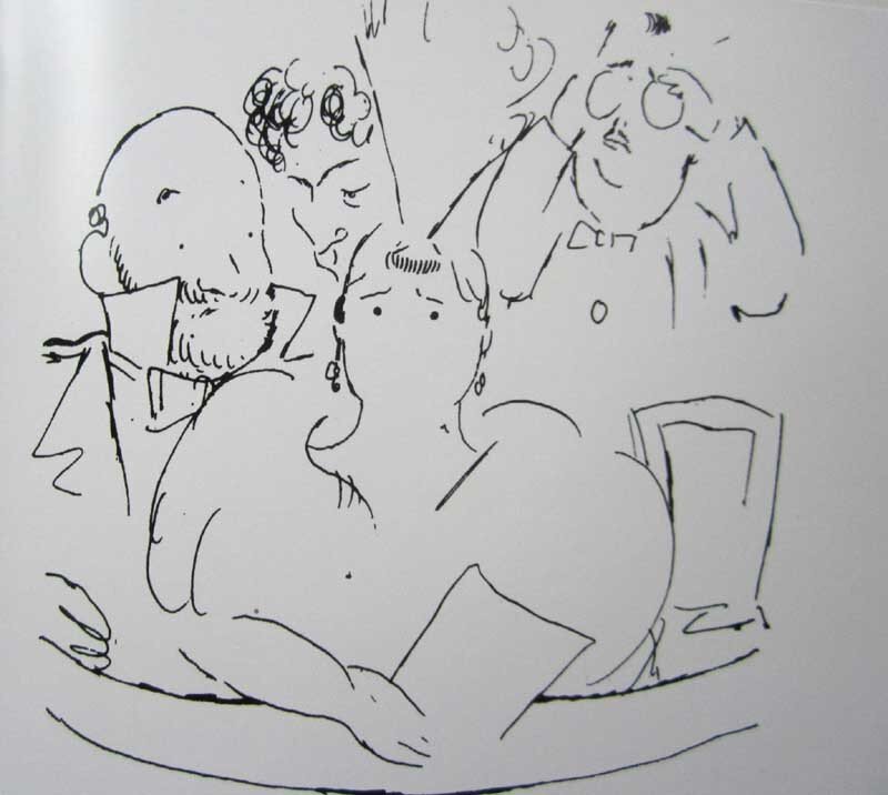 Верхом неуловимости Миси можно считать этот рисунок Жана Кокто, на котором легко узнается ее бородатый третий муж-художник, а также Дягилев в очках, но что вот это за существо с глазками-точками посередине? По таком "фотороботу" человека не опознаешь.