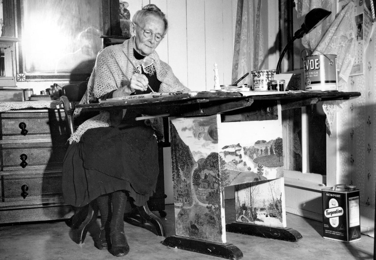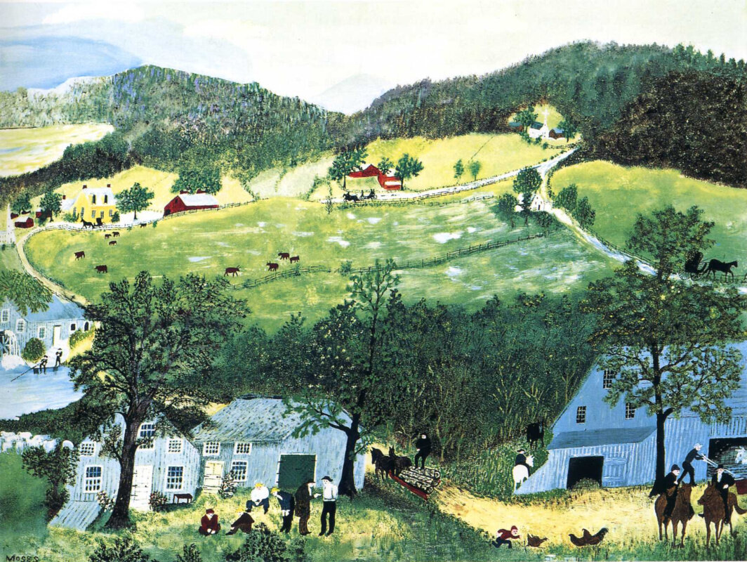 Ну, посудите сами. Анна Мэри Мозес родилась в 1860-м году и большую часть своей жизни провела на ферме в штате Нью-Йорк. Она стала женой фермера, родила пятерых детей, и этого уже было достаточно, чтобы не отвлекаться на всякие "глупости" вроде рисования, которое она любила с детства.