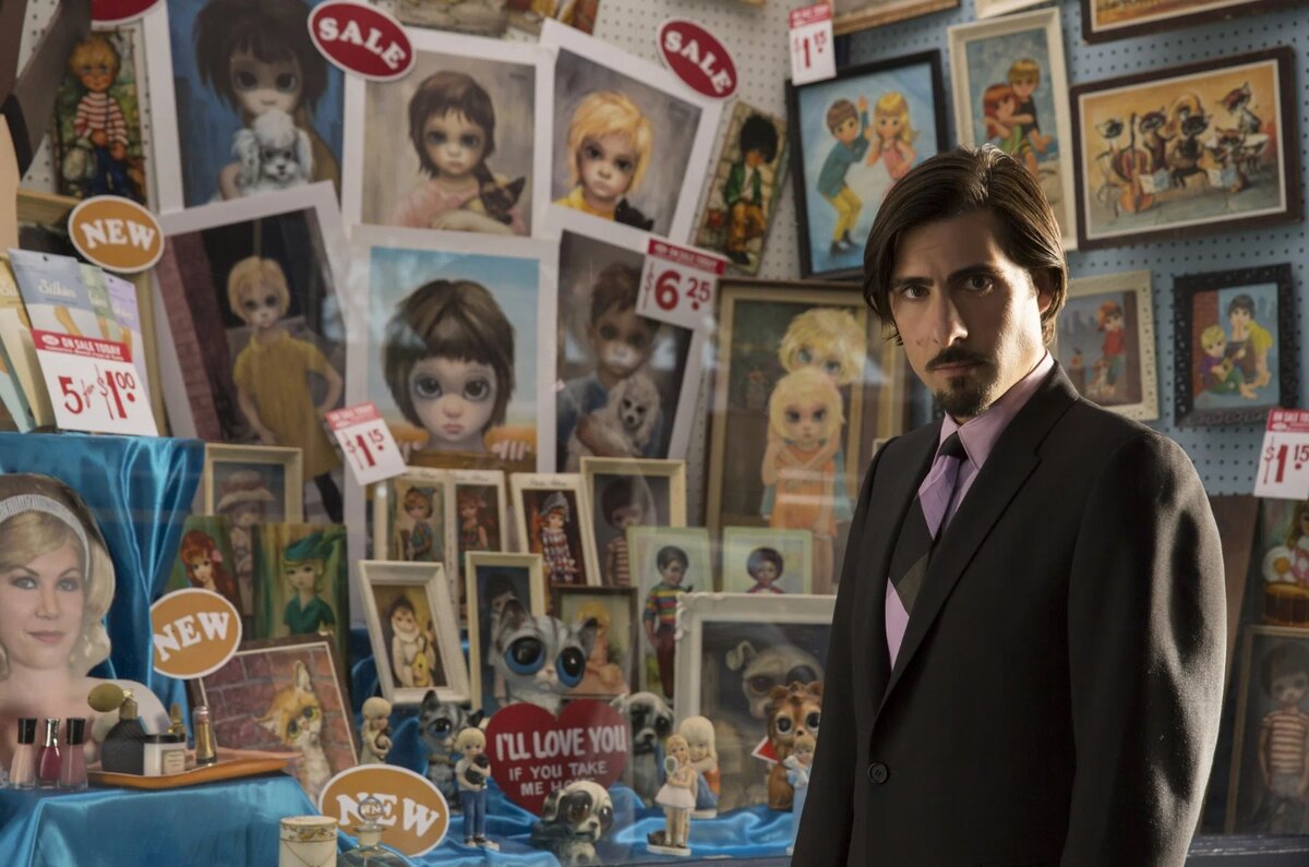 - Успех Маргарет, действительно, полностью заслуга мужа. Во-первых, ей, как женщине в Америке 50-х, было бы не пробиться, особенно, с ее скромностью и погруженностью в творчество. Во-вторых, он придумал ловкий рекламный ход - продавать ее детей с огромными глазами не только на картинах, но и на постерах, открытках, посуде и т.д. Именно это обеспечило огромный коммерческий успех. В фильме есть фраза: